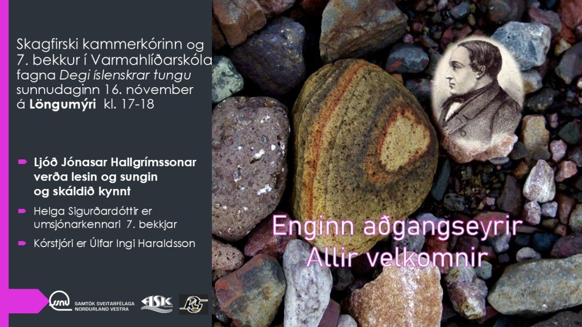 Um langt árabil hafa nemendur 7.bekkjar tekið þátt í dagskrá 16.nóvember með Skagfirska Kammerkórnum. Sá kór hefur sungið lög og hafa nemendur lesið ýmist ljóð eftir sama höfund eða lesið æviþætti skáldsins. Skáld þessa árs er Jónas Hallgrímsson.