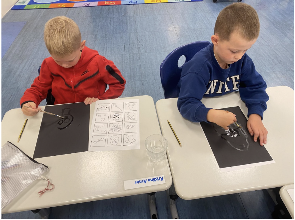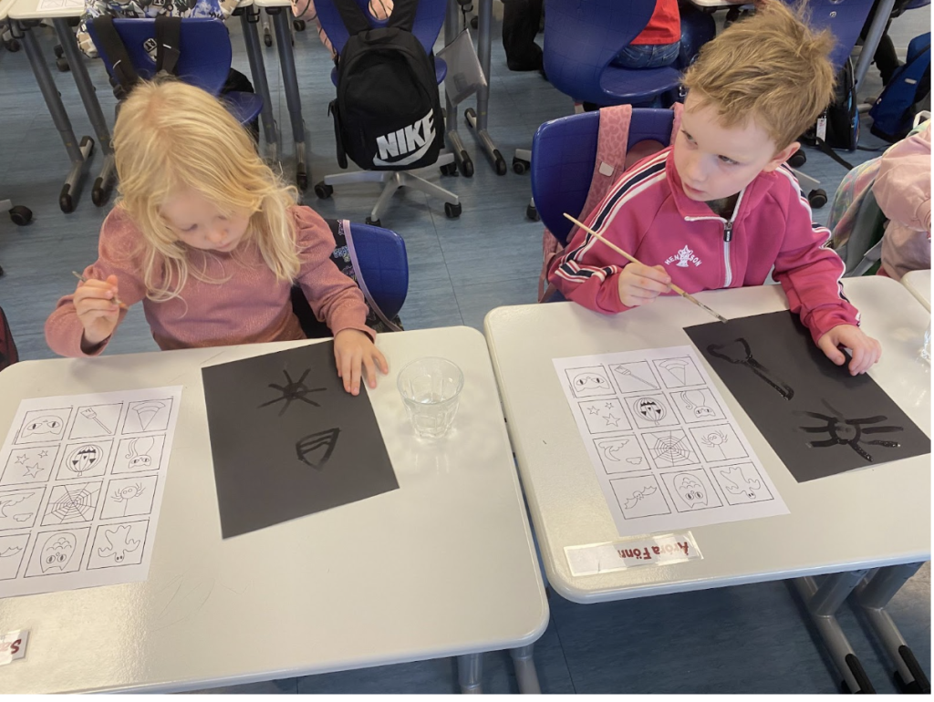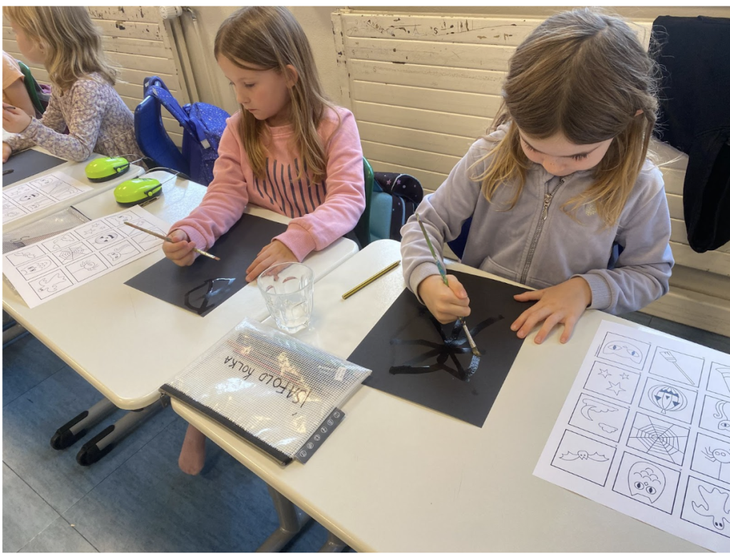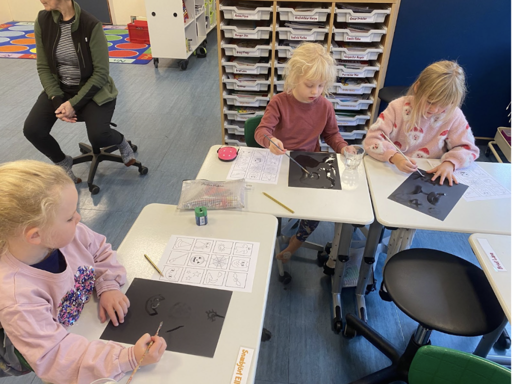Gaman saman, samstarfsverkefni leikskólans Birkilundar og Varmahlíðarskóla, er komið á fullt. Löng hefð er fyrir þessu samstarfi skólanna, en það byggir á gagnkvæmum heimsóknum allan veturinn. Vikulega hittast börnin í skólahópi leikskólans og nemendur 1. bekkjar Varmahlíðarskóla, til skiptist í skólunum. Yfir skólaárið fara skólahóps börnin einnig í heimsóknir í alla bekki grunnskólans og nemendur allra bekkja skólans heimsækja leikskólann. Margt er sér gert til gagns og gamans í þessum heimsóknum. Í haust er skólahópurinn búinn að fá kynningu á skólanum okkar, ganga um hann allan, sjá kennslurými, starfsemi og aðstæður sem og hitta nemendur og starfsfólk. Það var gaman að sjá hve þessum góðu gestum okkar var vel tekið alls staðar. Þá er hópurinn búinn að fá kynningu á skólalóðinni okkar og leiksvæðinu hér umhverfis. Í leikskólaheimsóknum haustsins höfum við skemmt okkur vel við frjálsan leik inni sem og úti. Meðal annars er búið að drullumalla, búa til áveituskurði og fleira skemmtilegt. Nú á dögunum gerðu krakkarnir tilraun saman hér í skólanum, þar sem athugað var hvort hægt væri að mála á svart karton með saltvatni. Niðurstaðan kom skemmtilega á óvart.