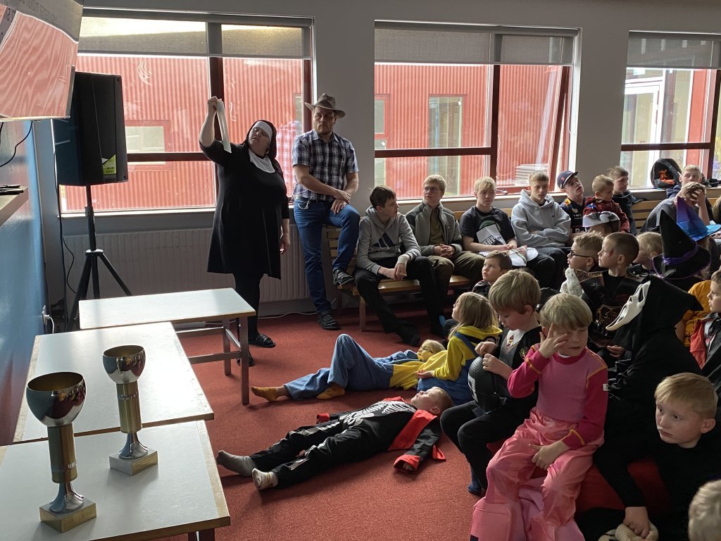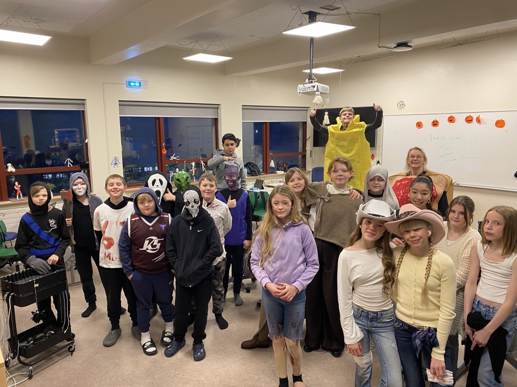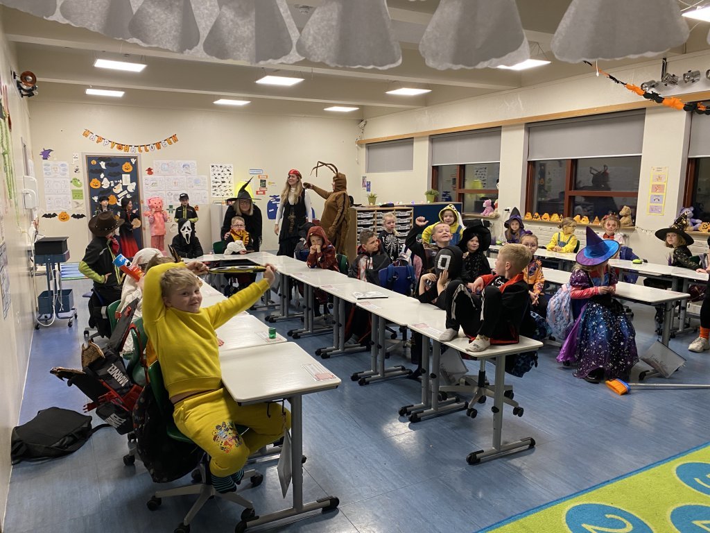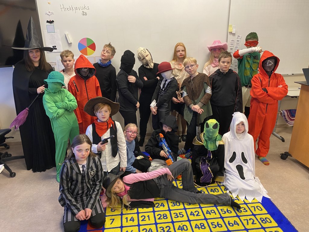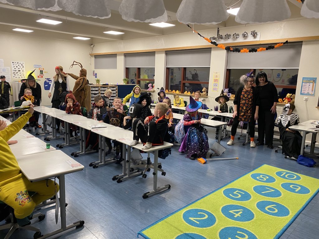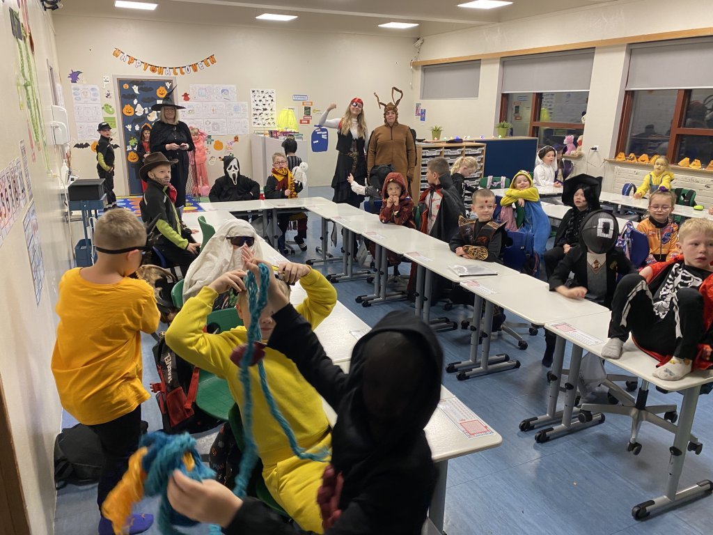 Hápunktur dagsins var draugagangurinn sem 10. bekkur setti upp þar sem nemendur og starfsfólk fengu að ganga í gegnum myrka herbergjakima og upplifa sannkallað hrekkjavökuævintýri. Þar mættu þeim draugar, dularfull hljóð og ýmsar verur sem sáu um að halda adrenalíninu á lofti! Hrekkjavaka er skemmtilegur siður sem margir nemendur hlakka til ár hvert. Hún býður upp á sköpun, leikgleði og ímyndunarafl, og er frábært tækifæri til að brjóta upp hefðbundinn skóladag og njóta saman góðrar stemningar.