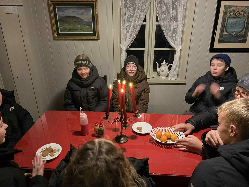 Nemendur fengu að kynnast hvernig tólgarkerti voru búin til, sem var ómissandi hluti af myrku skammdegi, fróðleik um hvernig matur var eldaður í gamla daga, fengu tækifæri til að smakka tvíreykt hangikjöt og hlýddu á fróðlegar sögur um gamlar íslenskar jólahefðir. Svo var notaleg stund þar sem sköpunargleðin réð ríkjum og nemendur fengu að skreyta piparkökur og gátu yljað sér á heitu súkkulaði í Áshúsi. Ferðin var ekki aðeins skemmtileg heldur einnig ómetanleg viðbót við kennsluna, sem veitti nemendum dýrmæta innsýn í íslenskan menningararf. Skólinn þakkar kærlega starfsfólki Glaumbæjarsafns fyrir frábærar móttökur og ógleymanlega heimsókn!
