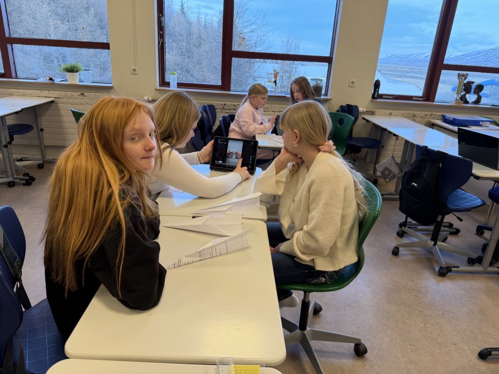 Nemendur í 5.-7.bekk unnu saman í útikennsluverkefni í gær. Verkefnið var að hanna og búa til skutlur. Nemendur unnu saman í hópum og var byrjað inni á því að búa til skutlurnar og gera þær tilbúnar fyrir flug. Síðan var farið út fyrir skólann og þar reyndu nemendur að láta skutlurnar fljúga sem lengst. Tímataka og lengdarmælingar voru hafðar til hliðsjónar til að finna út hver færi lengst. Notast var við spjaldtölvur við tímatöku og málbönd við lengdarmælingar, en þar reyndi þó nokkuð á reikningshæfni nemenda. Það þótti líka mjög jákvætt að skutlurnar færu snúning, en þar var hægt að ná sér í aukastig. Í lokin var boðið upp á dýrindis kakó og piparkökur sem nemendum þótti nú ekki amalegt að fá. Í þessu verkefni reyndi á samvinnu, hugmyndaflug, stærðfræði og hönnun.